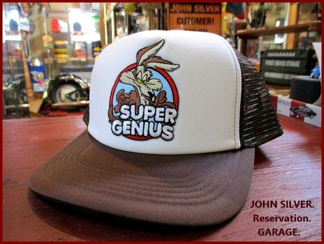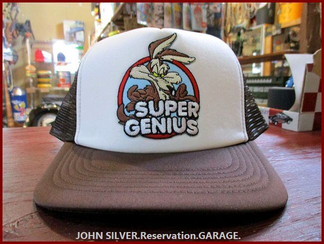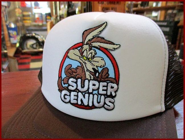 ★【ワイリーコヨーテ】wile/e/coyote/genius/イラスト/ワッペン/メッシュ/キャップ/ホワイト/ブラウン/入荷のご案内になります!