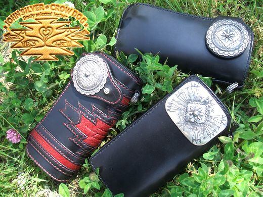 John Wallet #1はシンプルなバイカーズウォレットのスタイルにハンドメイドのφ55mmコンチョを合わせたモデル、コインケースのコンチョ、ロープを留める為の金具もシルバー製のハンドメイドとなっております。