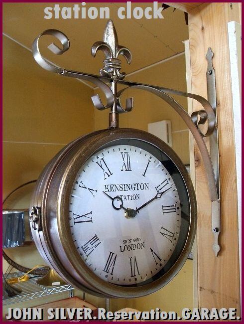 【時計】ステーション/クロック/両面/時計のご案内です。異国の駅や街並みにお目見えしそうなぁ!お洒落なぁ!アイテムです♪しかも両再度拝めるってなぁ!わけですから☆他国の時を同時に刻ませたい!刻みたい!あなたと一緒に時を共有したいのぉ!なんてのもアリなのです!おまけに時計本体の角度をくるっと変えられますのでユーザーさまのお好きなポジションでどうぞ♪