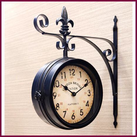 【時計】ステーション/クロック/両面/時計/ブラックのご案内です。異国の駅や街並みにお目見えしそうなぁ!お洒落なぁ!アイテムです♪しかも両再度拝めるってなぁ!わけですから☆他国の時を同時に刻ませたい!刻みたい!あなたと一緒に時を共有したいのぉ!なんてのもアリなのです!おまけに時計本体の角度をくるっと変えられますのでユーザーさまのお好きなポジションでどうぞ♪