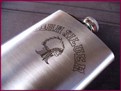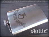 ジョンシルバー・オフィシャルロゴ入りオリジナル!8ozステンレス・スチール素材スキットルに!レーザー彫刻加工を施し製作いたしましたぁ!形状が彎曲『弓型』になっており★デニムのヒップポケットにも◎フィットいたします!キャンプ・アウトドアシーン他・旅のお供にも連れ出してほしいアイテムです!使い込んだ経年変化はあなたと歩む生きてる証!よろしくどうぞお願いいたします★